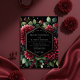 A dramatic and romantic design featuring lush, deep red blooms and dark foliage against a rich black background. The artistic arrangement evokes a sense of opulence and moody enchantment, perfect for an elegant evening affair.