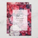 Vinterbröllopsinbjudan till djupt rött, rosa och silver blommigt. Idealisk för ett trädgårdsbröllop.