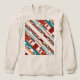Ett diagonalt mönster i tunna rader, inspirerat av stilar i medelhavs- och sydvästkonst, består av rader av geometriska former i korall och en djup rost orange med turkos. Bild här på en "havremjöl", långlivad, tri-blend t-shirt, med annat färg och stilar tillgängligt. Det här är en ljus och färgstark, polerad design som ger ett varmt tillägg till din avslappnad, vardagskläder (oavsett om det gäller arbete/skola, sport/rekreation, avslappning/socialisering eller just löpande ärenden). Den här "rika konstens" skjorta kan göra vår monotoni av dressing till vår mest nonchalanta värld ljusare och bidra till en känsla av personlig stil.