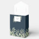 Snyggt Djuphavsblå elegant grey löv bröllopsförmånslåda med delikat vattenfärgsformat löv som anger ditt namn och speciella datum i modern typografi. Du kan anpassa dig med ditt eget tackmeddelande under locket. Ett perfekt sätt att tacka gästerna! Designad av Thisisnotme©