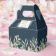 En stilfull bröllopspresentlåda med ömtåliga akvarellblad på en deep sea blue bakgrund som ramar in era namn och tacksamma meddelanden. Ett perfekt sätt att tacka era gäster! Designad av Thisisnotme©
