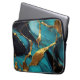 Deep Teal Marble with Bold Gold Veins Laptop Fodral