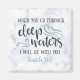 Denna uppmuntrande Christian Bible Scripture-vers: Isaiah 43:2 "När du går igenom djupt i vatten kommer jag att vara med dig, elegant skriven i svart modern typografi och förskönad med attraktivt blått snabbt vinkar.