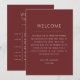 Deep Wine Red Wedding Timeline. Schedule + Welcome Inbjudningar