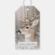 A stag in falling snow sets a quiet woodland mood for your holiday gift wrapping. The front reads Woodland Holiday Wishes, and the back includes To and From lines for easy gifting. Neutral taupe and ivory with soft pine details pair with linen ribbon and kraft paper for a warm, understated finish.
