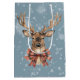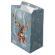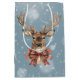 A lovely deer wearing a plaid bow on the back and front of this Christmas gift bag.
