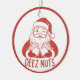 Detta prydnadsföremål är en del av en större samling av retro-stil-stygga julprydnadsföremål. De har alla svettningar eller en dubbla som betyder lite snålhet och rati. Detta skulle vara en underbar prydnad för att hedra minnet av denna Julhelg med din roligt familj eller dina vänner. I en enkel retro-monokromatisk röd utformning vinkar tomten och håller ett par akorner. Texten lyder: "Deez Nöt". Perfekt som lagerhållare för en stygg vän! Det finns en plats på baksidan till skrivan för ett personligt budskap från kort eller från namn till familjen med året.