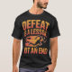 Den svarta t-shirt-texten "DEFEAT ÄR ETT LESSON, INTE ETT END" har en fetstilt, stiliserad orange och röd stil. I den centrala bilden visas en springer, som verkar vara en ljusflådd individ, i rörelse med dynamiska orangar och röd bakom, vilket tyder på snabbhet och övervinnande av hinder. Utformningen uppmuntrar ett motståndskraftigt tänkesätt mot bakslag.