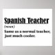 Den spanska läraren, som en vanlig lärare, bara mycket kyligare. Lönsam definition för spanska lärarkvinnor och manar. Fantastisk föreställning för Españollärare mamma, pappa, syster, bror, son, dotter, morbror, moster, mormor, mormor, mormor, morfar, morfar, vän, arbetstagare, hustru, make ...