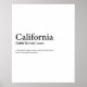Minimalistisches Poster mit einer slang-artigen Beschreibung von Kalifornien
