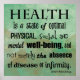 "Hälsa är ett tillstånd av optimalt fysiskt, psykiskt och social välbefinnande, inte bara avsaknad av sjukdom eller funktionshinder."