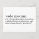 Vade Mecum (bokstavligt talat "följ med mig") är en favorit bok som tas överallt eller en utvald samling information som förvaras nära handen. Som en del av vår "Definitions"-serie har vi låtit frasen och dess betydelse återges i svart text och förkroppsligat den på en rad olika artiklar som översättare kan använda. Sprid ord!