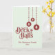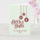 I eleganten "Dekk the Halls" visas ett minimalistiskt, icke-fotoutformat kort med ljust grönt bakgrund och rödtypografi av mörken. Lämplig för både familjemedlemmar och företagsmedlemmar. Det finns utrymme under huvuddesignen så att du kan lägga till din egen anpassningsbar. Du kan också anpassa meddelandet inuti.