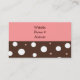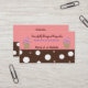 Ett modernt affärskort i choklad och vitt polka dots med rosa bakgrund. Kort för perfekt till ett bakverk, dekorationsföretag för kakor, godis, desserter, catering, restauranger osv.