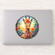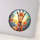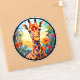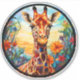 Den färgstarka runda bärbara datorn har en runda AI-genererad giraff och blommigt porträtt i nedfläckad glas. Underbar för bilar, skateboardbord, skåp och mycket annat!