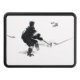 Hockey är i luft och hockeyspelaren är på väg mot målet. Perfektens för barn och idrottsmän i alla åldrar.