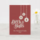 I eleganten "Dekk the Halls" visas ett minimalistiskt, icke-fotoutformat kort med röd bakgrund och grönt för blek. Lämplig för både familjemedlemmar och företagsmedlemmar. Det finns utrymme under huvuddesignen så att du kan lägga till din egen anpassningsbar. Du kan också anpassa meddelandet inuti.