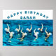 Banderoll för födelsedagsfest av personlig med simmande bassäng och synkroniserade simmare. Lägg till namn om du vill anpassa dig.