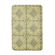 Mönstret har utsmyckade rutor med mittersta gitterdiamanter. Svart på ljusgul bakgrund