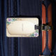 Vacker dekorativ blomsterformad resväskemärke med pärlor