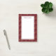 Fästiga anteckningar med en upprepande mönster av finare golden snöflingor med elegant kristallina former. En röd bakgrund för mörken.