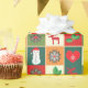 Den pappra inslagningen för julen firande när man utformar julprydnadsföremål som Julgran, julklapp, julkrans och juldekaler lämnar i återtryck med en presentation av grönt färg.