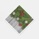 Utformningen innehåller ett foto av en dekorerad fir grenar på träbakgrund.