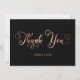 Dekorativ "Tack"-grafik i folie faux ro guld mot svart bakgrund. Baksidan är svart med ro moderna teckensnitt med versaler stil. Du kan ändra bakgrunden till färg. Anpassa teckensnittet stil för namn och information på baksidan. Lägg till ett eget bröllop-foto bakom textbilden eller på baksidan.