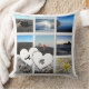 Monogrammed i ett dubbla hjärta i dekorativ kudde har plats för 9 kvadratiska nyzeeländska foton eller instagram-foton för att anpassa kuddmallen till minnet av en speciell helgdag- eller honungsmånsemester. Du kan ändra den ofärgade bakgrunden genom att följa redigeringsknappen till högerna.
