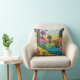 Whimsical Wonderland Det här är en dynamisk och dynamisk målning som visar ett lush, storybook-liknande landskap. Bilderna har fet, svart kontur som definierar varje inslag, ge det till en grafisk ny estetisk bild. Tornet, träd med texturerade bruna trunkar dominerar scenen. Vissa bär en skarp grönt, medan andra är orörda med rik lila löv, vilket antyder en fantastisk skog. Bakgrunden med rullande backe visas i olika band av levande gröntar, orangar och nyp som skapar ett skiktat och nästan quilted-utseende. En blått kropp av vatten betyder genom mittpunkten, dess yta avspeglar en ljus, nästan irrhärtig kvalitet. I förgrunden exploderade en mängd överdimensionerade, stiliserade blommor i nyans av rosa, rött och gult, åtföljda av olika gröntar av bladväxter och dekorativa snurrar. Himmel övergår från en mjuk blå till en varm gult och orange vid horisonten, där flera små, svarta fågellyketter sjunker mot den. Det övergripande intrycket är glatt fantasi och sjudande berättelse, som återges med ett nästan taktiskt, barnlikt konstnärligt uttryck.