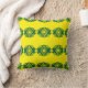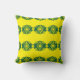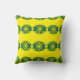 En pulserande gult dekorativ kudde som har ett geometriskt mönster med fetstilt grönt.