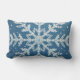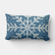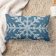 Det här är en dekorativ kudde. Den har en snö-kristalldesign i mönster.