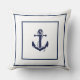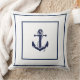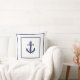 Dekorativ kudde visas i marin och vit med en ankarutskrift. Anpassa det här objektet eller köp som det är.