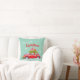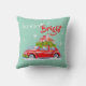 Dekorativ kudde för God jul, med en söt illustration av en skenbart dekorerad bil med grenar och lådor med presenter på tak.