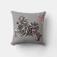 Brytningen kudder, eller dekorativ kudde som skrivs ut med en slå fantasiseahorse med zebra ränder och korallfärgad, betonar. Grå färgbakgrund. Dra tillbaka av kudder är fast korallfärg.