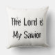 Dekorativ kudde med Jesus och ord "Herren är min sajt" skriven på baksidan av kudden