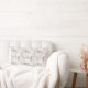 Dekorativ kudde med modern minimalistisk utformning, en mönster med kattungarnas ansikte, blommor, gräs på en beige bakgrund.