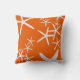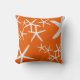 Kudde med vit sjöstjärndesign. Ljus persimonorange med en spridning av sjöstjärnor i alla storlekar. Välj en tyg som behövs för inomhus- eller utomhusbruk. Lys upp ett strandhus / sjöstugan eller lägenhet vid havet med denna unika heminredning. Denna design finns också i en mängd olika färger.