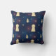 Square dekorativ kudde, med en stjärnnatt mönster. Med rött och blått ljus, knivar och nyckelhål på en mörk blått (marin) bakgrund.