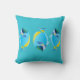 Dekorativ kudde visas i en söt turkos färg med ett söt tropiskt fisktryck. Anpassa det här objektet eller köp som det är. Lagrar-bild