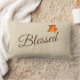 Dekorativ kudde visas i ett naturligt färg med en Thanksgiving Blad-textutskrift.