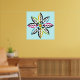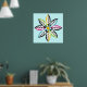 Dekorativ Löv-Flower modern, abstrakt poster design, som innehåller en blomma av färglöst löv med gultens centrum. Två av dem i svart, gult, två i svart, akvarium/turkos, två i svart, fuchsia rosa och två i svart, kalkgrön. I vart och ett av dem finns mindre vita löv. Den här abstrakt-poster som inspirerats av fyrkantiga färger har en reflexkänsla och är fullständigt anpassade och den ljusblå bakgrunden kan ändras. Primitiv konst stil.
