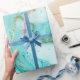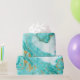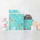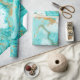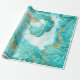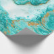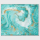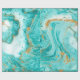 Dekorativ marmor struktur. Abstraktens målning. Turkos- och guldfärger på vit papper. Ovanlig design.
