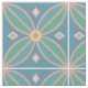 Dekorativ marockansk inspirerad blombricka mönster i söt teal grönt, blå med citronskal med gult med rosa diamanter på mjuk blå bakgrund Klipp ut i gräns till team med andra material
