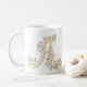 Dekorativ för hand ritad versal monogram A mugg. Snygg för hand ritad klotterdesign med hjärtan och blommor. © Unik typografi konst och design av Sarah Trett. www.sarahtrett.com för www.mylittleeden.com på zazzle
