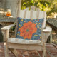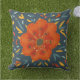 Den färgrika orange blomman kudder med en nyckfull illustration av en ljus orange blomma, och många dekorativa inslag i ljus orange, gulnar, blått och mörk - blåttfärger. Denna härliga blomma kudder är gladlynt och lycklig. Dess ska varma färger kommer med ett leende på ditt ansikte, om du älskar nätt blom- designer och nyckfulla illustrationer.