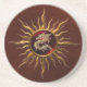 En guld- solprydnad med ett djupt - rött centrera, lade in med en guld- drake. En stilfull drakedesign för fantasikonst och drakeälskare!