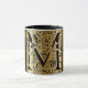 Vacker dekorativ svart och guldbokstav M kaffekopp