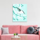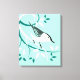 Fågelkonstkanvastryck av vit gick mot nuthatchen perched på dekorativ gren med lövmönster på ljust - slösa bakgrund