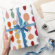 Detta papper har en modernt utformning i mitten av århundradet av cirklar och ovaler som har fastnat i färg tillsammans på en vit fält.